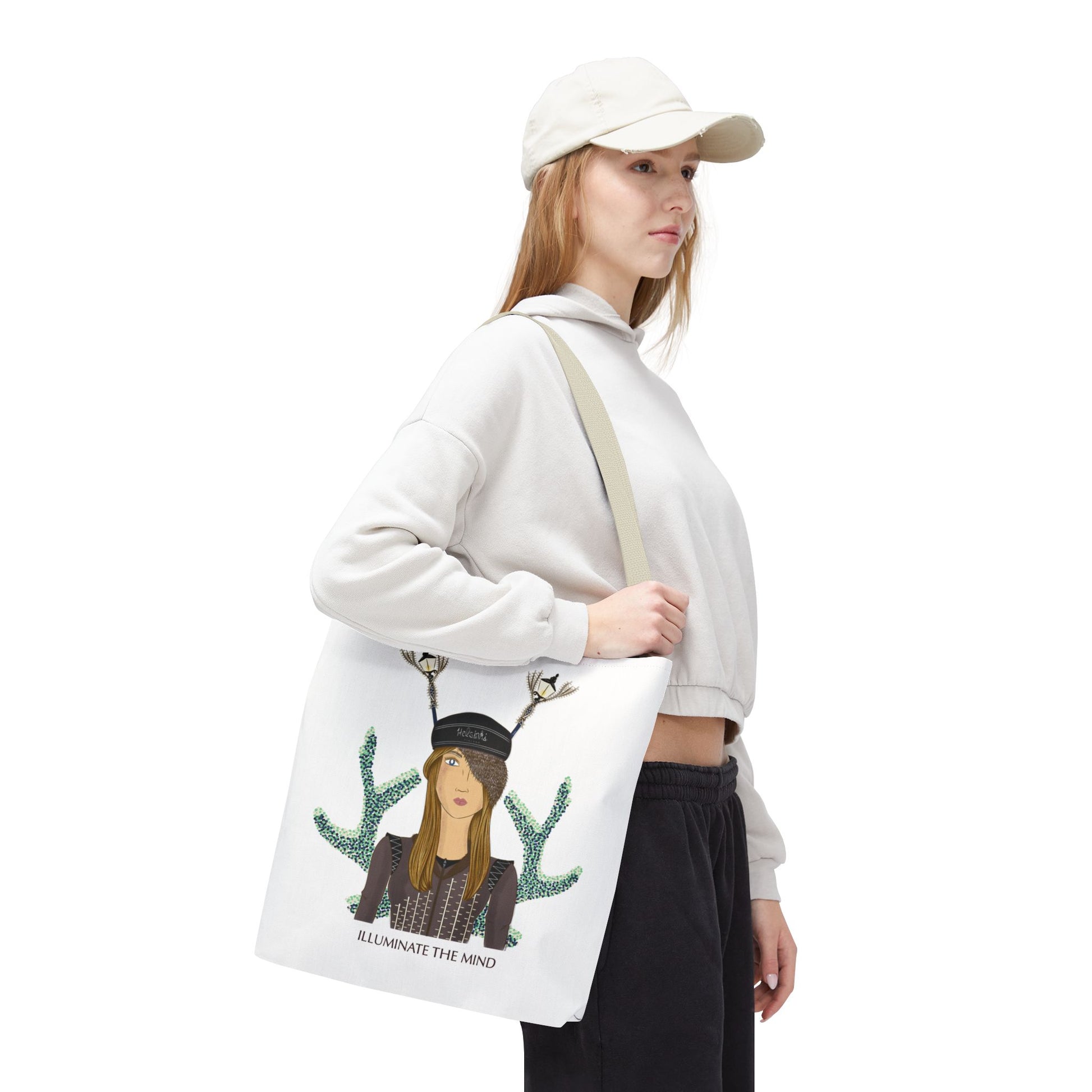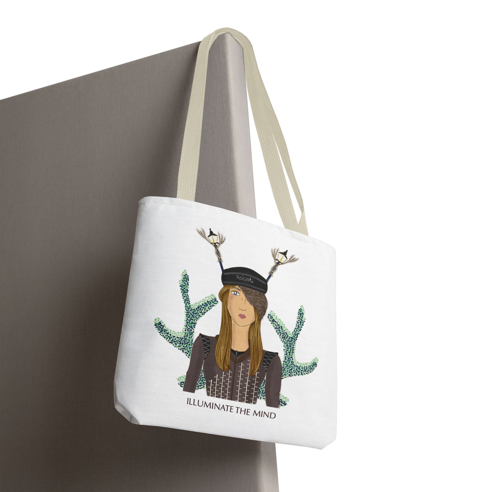 Get ready to illuminate your style with the Street Light Lampposts Tote Bag! Featuring No.33 Girl with the Street Light Lampposts fashion art, this bag comes in 3 handle color options: black, beige, and navy. Carry your essentials in a quirky and playful way.