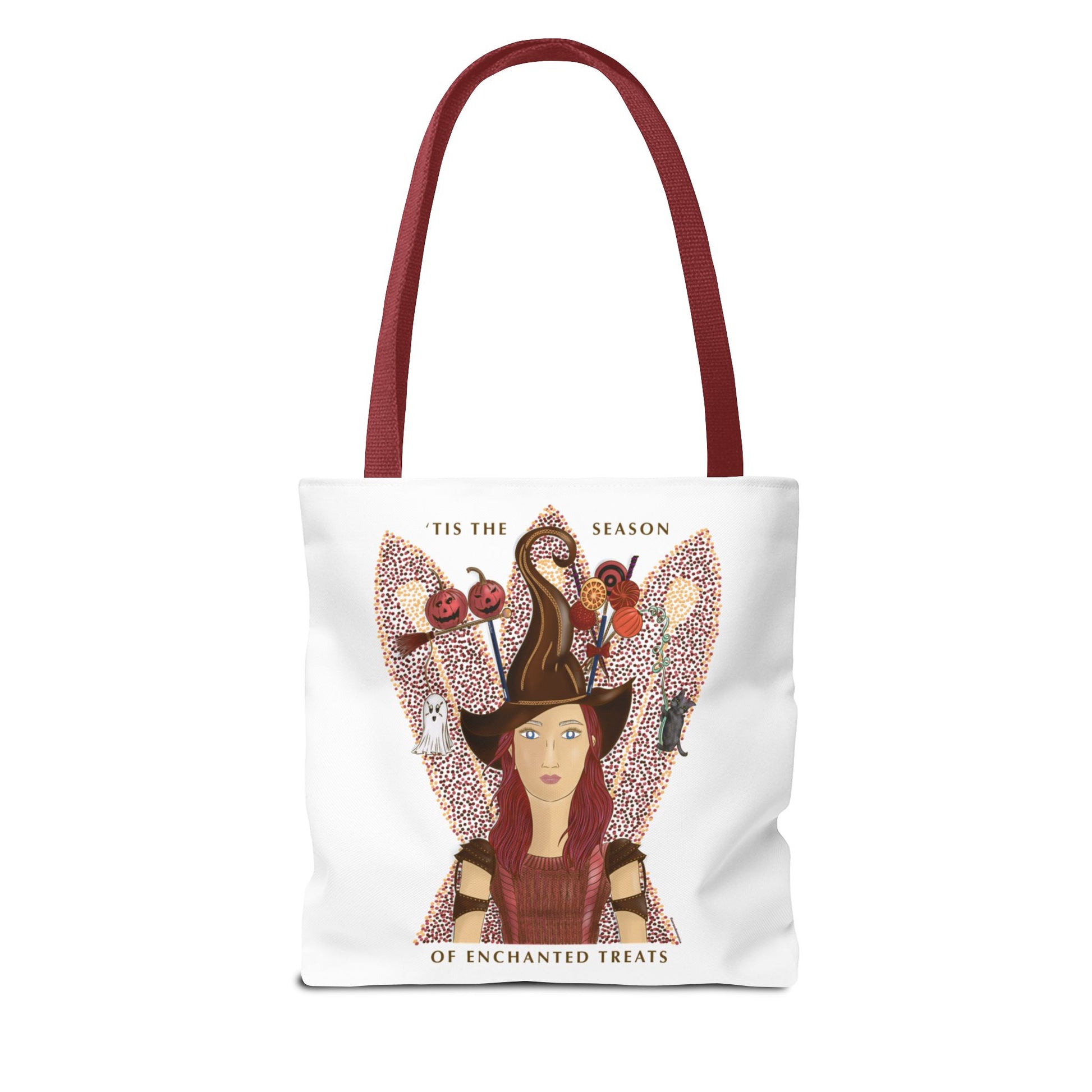 Celebrate Halloween in style with this Witch's Hat Tote Bag featuring No.46 Girl with the Witch's Hat design. Measuring 13"x13", it's perfect for carrying treats and candy while trick-or-treating. The playful design adds an enchanted touch to your festivities, making it a fun and practical accessory for Halloween night.